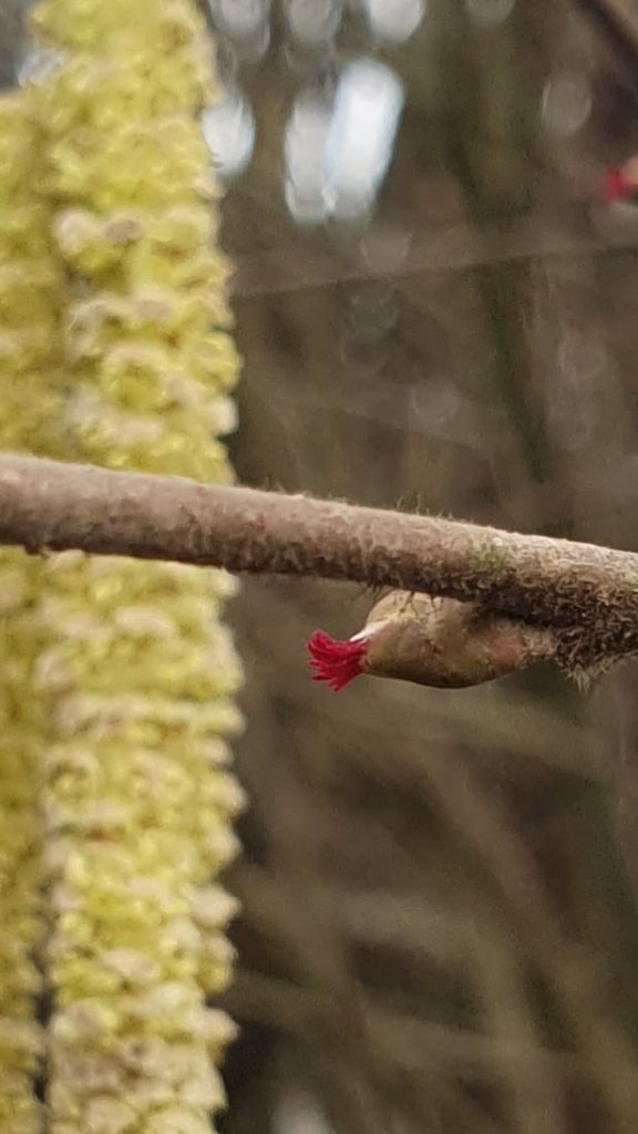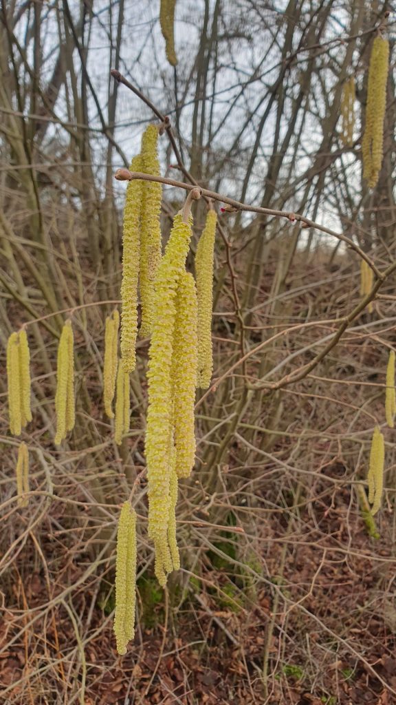 Schneeglöckchen und Haselnuss blühen. Sichere Zeichen für den Vorfrühling.